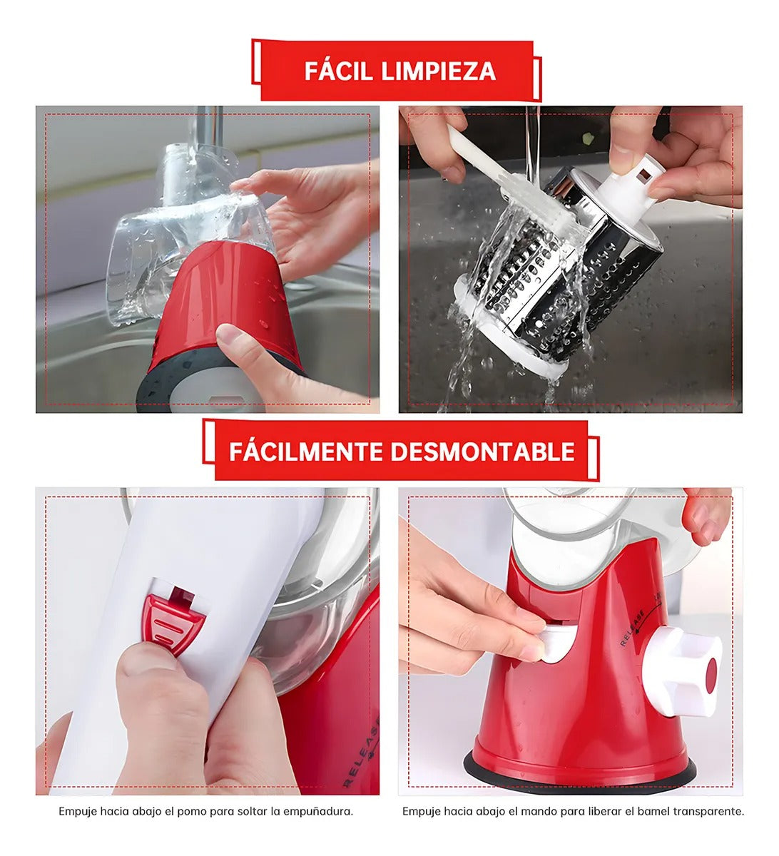 Olvídate de perder tiempo cortando. Con este rallador 3 en 1 tendrás verduras, frutas y quesos listos en segundos para tus platillos favoritos.