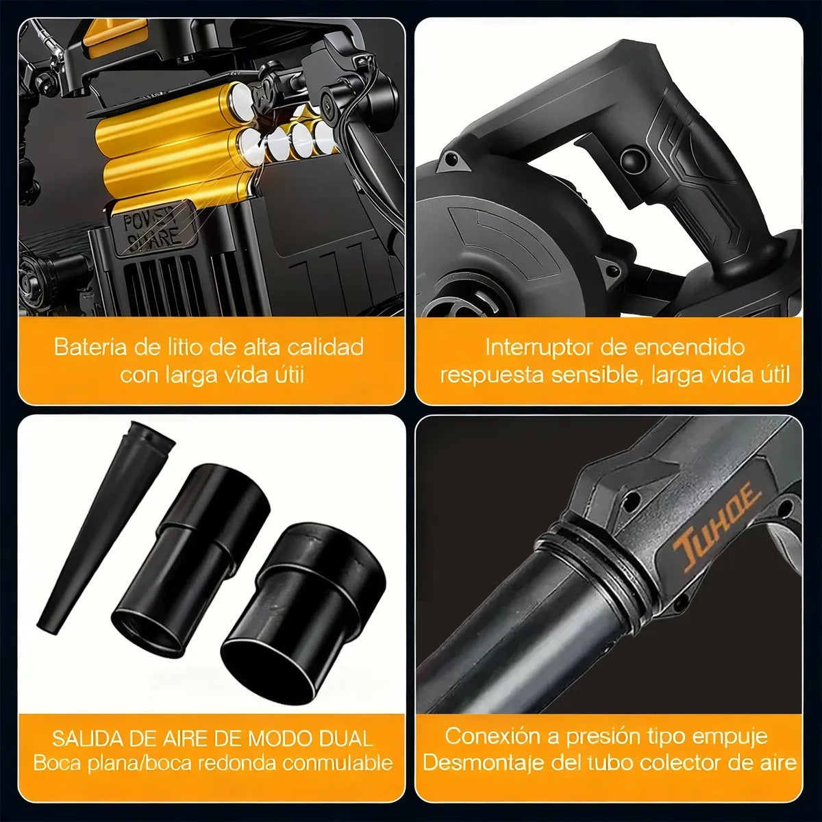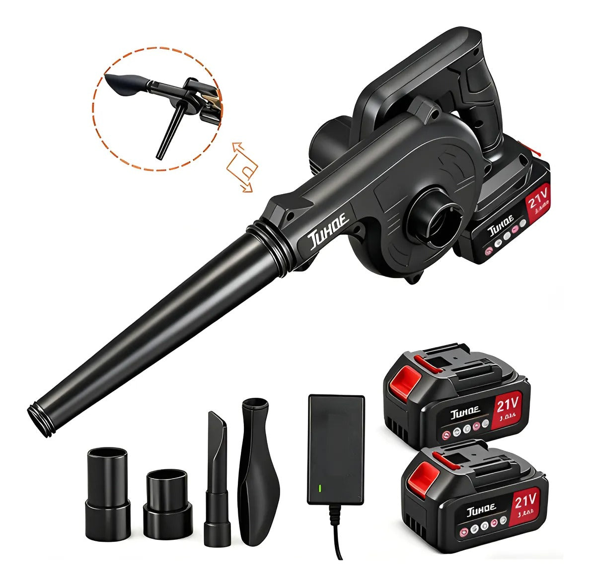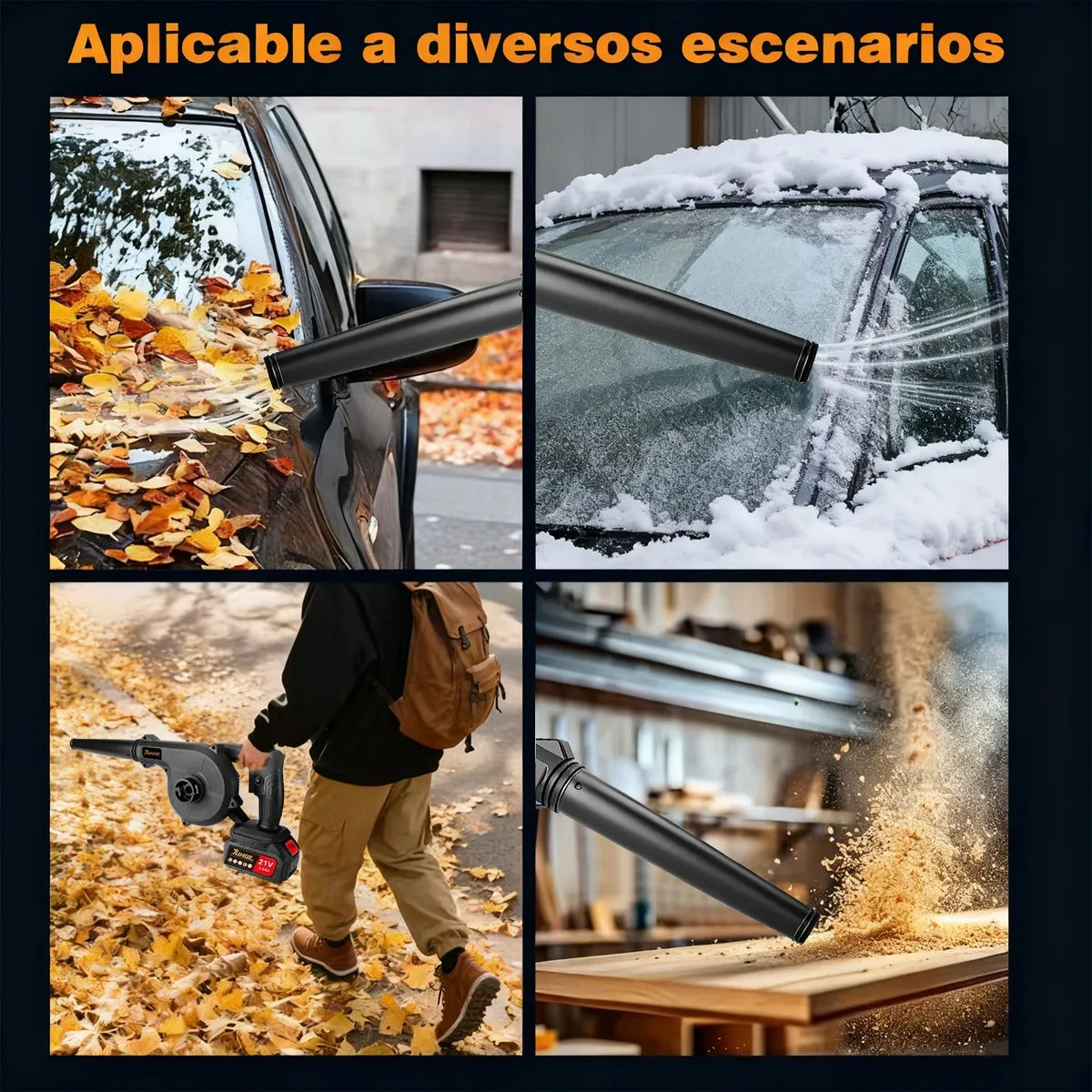 Limpia hojas, polvo y basura sin esfuerzo. Su motor eléctrico ofrece potencia real sin cables, sin ruido excesivo y sin complicaciones. Perfecto para patios, autos, cocheras y talleres.