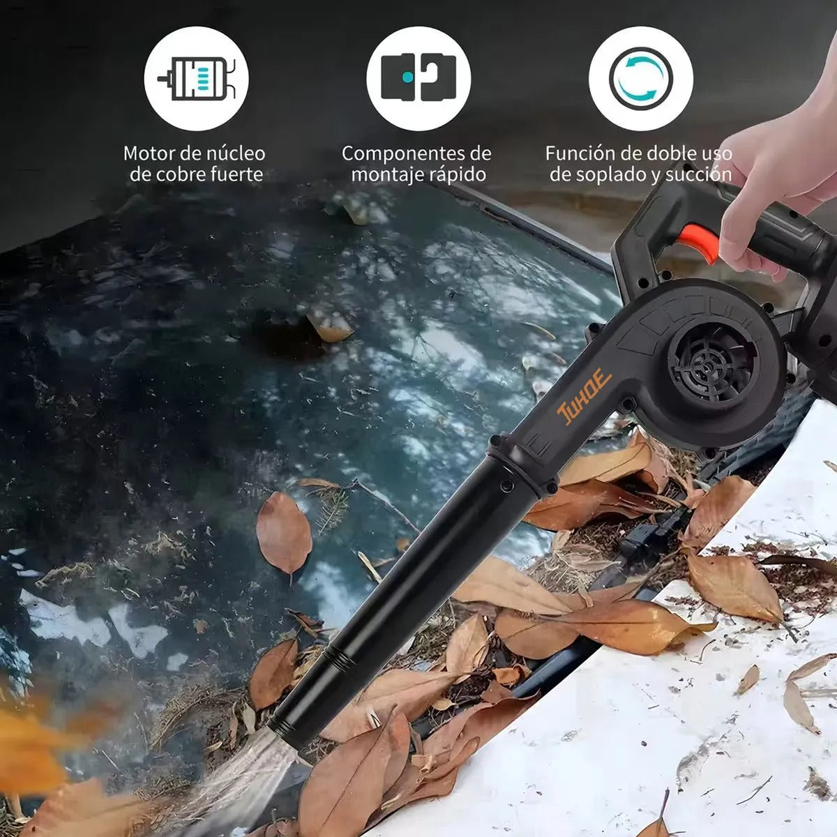 Su diseño ergonómico y compacto te da control total sin necesidad de equipos pesados o gasolina. Es la solución perfecta para limpieza diaria o mantenimiento del hogar.